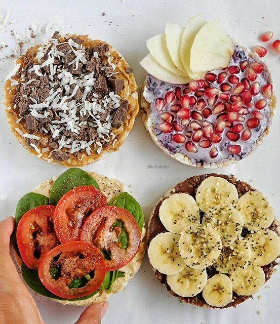 Brown Rice Cakes With Pb Chocolate Blueberry Coconut Cream Pomegranate Hummus With Spinach Tomato By Ichabeld Quick Easy Recipe The Feedfeed